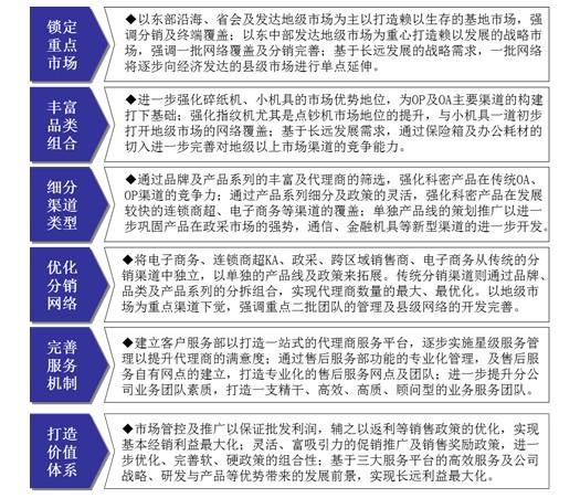 通过厂商互补以开发维护市场:以核心、重点经销商为主要对象,市场开发与维护逐步实现由经销商单干的放羊式销售向经销商为主、公司人员协助的协销模式发展,最终发展为厂商共同开发维护市场的联合式分销模式。