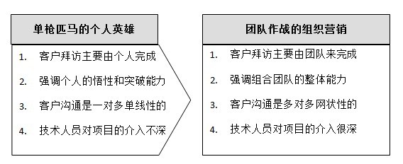 由单枪匹马的个人英雄向团队作战的组织营销转变。