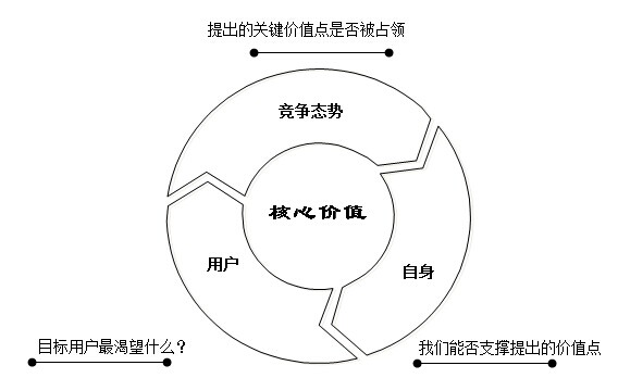 品牌核心价值的提炼基于三方面:用户需要什么?竞品没有什么?我们有什么?如下图所示: