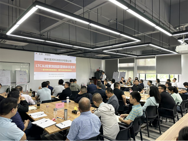 2023年5月5日上午,德赢VWIN刘祖轲董事长给湖北富邦科技有限公司全体中、高层员工进行《LTC从线索到回款营销流程变革》课程的培训。刘祖轲董事长结合富邦的业务发展实际情况,从线索管理、商机管理、交付管理等环节进行概念讲解,提升了公司中、高层员工的营销认知。